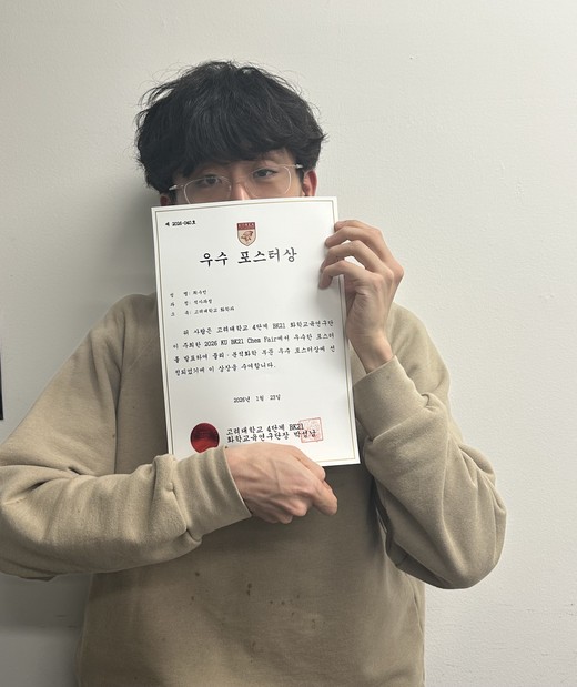 A big congrats to Sumin, for winning the 우수 Prize in the 2026 KU BK21 Chem Fair! Jan 26, 2026 Related members: 최수민 Sumin Choi