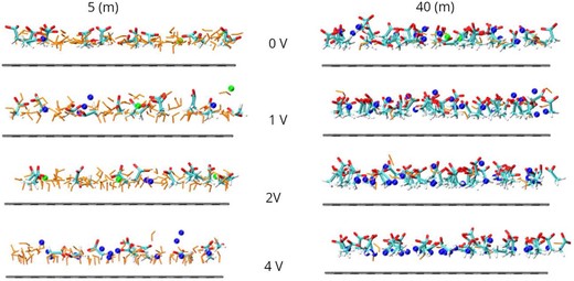A recent study reported a super-concentrated lithium–potassium acetate-based water-in-bisalt (WiBS) electrolyte. Notably, this system exhibits a high electrochemical stability window of ∼3 V despite the absence of a conventional solid electrolyte interphase. Intriguingly, vibrational spectroscopy revealed a systematic redshift of the O–D stretch of HOD in this electrolyte with increasing salt concentration contradicting the idea that the enhanced electrochemical stability is positively correlated with the strength of the O–H bond. To explore the atomic factors determining such extended electrochemical stability of this WiBS, we investigate the molecular distributions and water reactivity at the electrified electrode–electrolyte interface using constant potential classical molecular dynamics simulations. By identifying truly interfacial molecules, we uncover a diminishing surface concentration of water molecules at the electrodes, which likely leads to a delayed onset of electrochemical processes. Furthermore, the reduced magnitude of the perturbing electric field along the reaction coordinates for electrochemical water splitting provides an atomic-level explanation for the enhanced electrochemical stability observed in this dual-cation system.